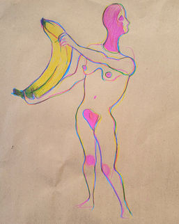 Born in the gloriously frantic energy of life drawing sessions, The Unbound Series (mostly in colored pencils) are little surprises that pop out before there is any time to overthink. A model’s pose might spark a scenario, a sentence, a feeling, a joke - an instant, internal riff that turns into something unexpected on the page.